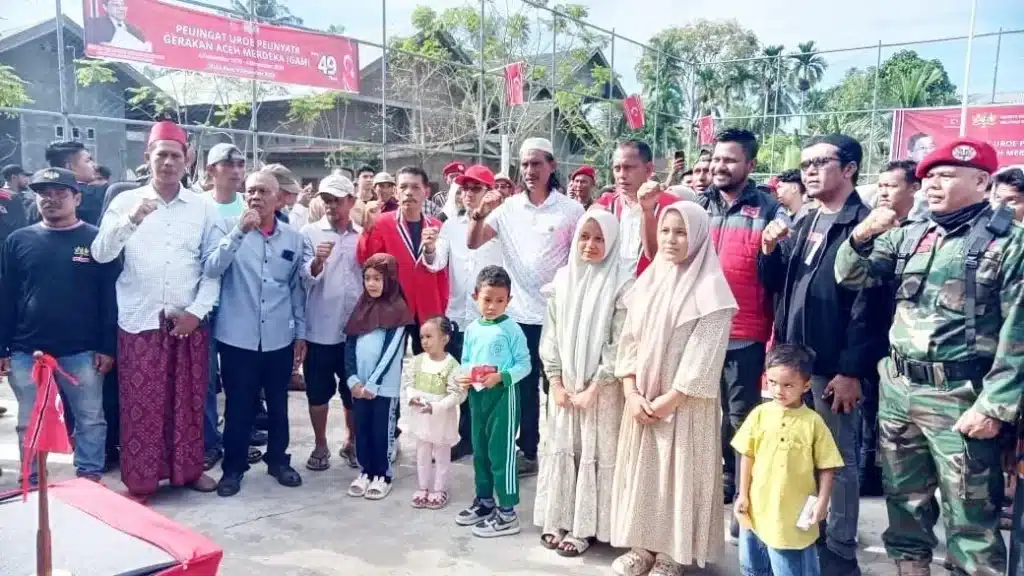 Lhokseumawe – Peringatan Milad Atjeh Mardeka ke-49 berlangsung khidmat di Lapangan Voli Gampong Meunasah Manyang, Kemukiman Kandang, Kecamatan Muara Dua, Kota Lhokseumawe, Kamis (4/12/2025).