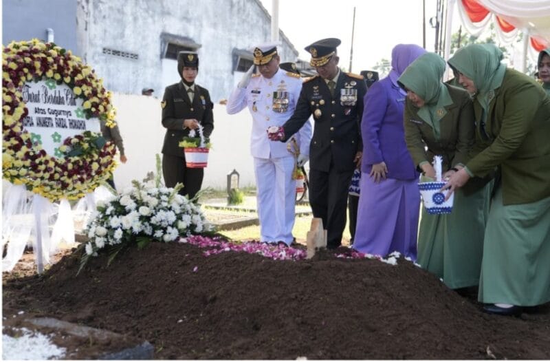 Upacara pemakaman dilaksanakan secara khidmat di Taman Makam Pahlawan Giripeni, Kabupaten Kulon Progo, Daerah Istimewa Yogyakarta, Minggu (5/4/2026). Bertindak selaku Inspektur Upacara, Asisten Perencanaan Umum Panglima TNI, Letjen TNI Candra Wijaya, memimpin langsung rangkaian penghormatan terakhir kepada almarhum.