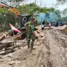 Bener Meriah — Satuan Tugas Penanggulangan Bencana Alam (Satgas Gulbencal) membangun jembatan darurat tipe Bailey untuk…