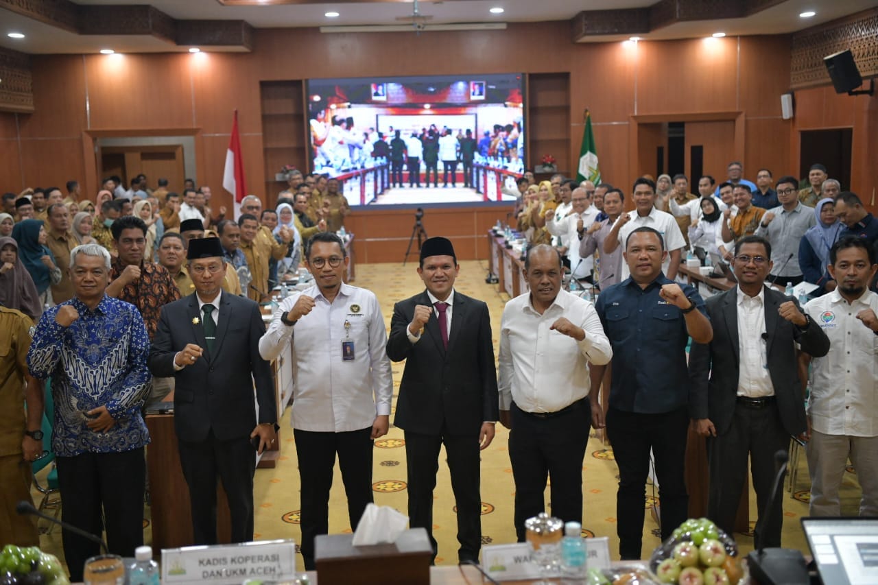 Sementara itu, Kepala Dinas Koperasi dan UKM Aceh, Azhari, S.Ag., M.Si., dalam laporannya menyampaikan bahwa Kopdes Merah Putih merupakan program gagasan Presiden RI untuk memperkuat ketahanan ekonomi masyarakat. Hingga kini, sebanyak 6.497 Kopdes Merah Putih di Aceh sudah memiliki badan hukum.